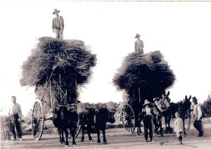 Fig 7. Campesinos cazorleños con los carros llenos de gavillas para ser llevados a las eras. Fotografía Majovi.